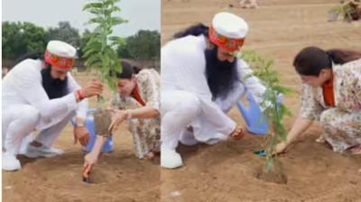 "बाबा राम रहीम और हनीप्रीत सिंह इंसा: एक साथ पौधा लगाते हुए"