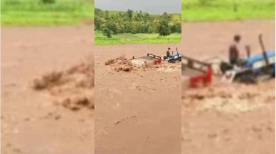 रेत निकालने के दौरान नदी में उमड़ा पानी, दोनों युवकों की जान पर बनी आफत, ट्रैक्टर समेत फंस गए बीच धारा में