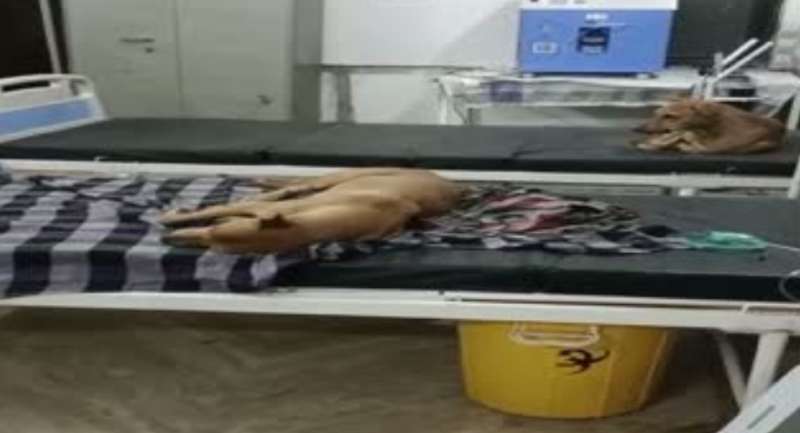 इटावा: सामुदायिक स्वास्थ्य केंद्र में लापरवाही, जच्चा-बच्चा वार्ड में सो रहे आवारा कुत्ते