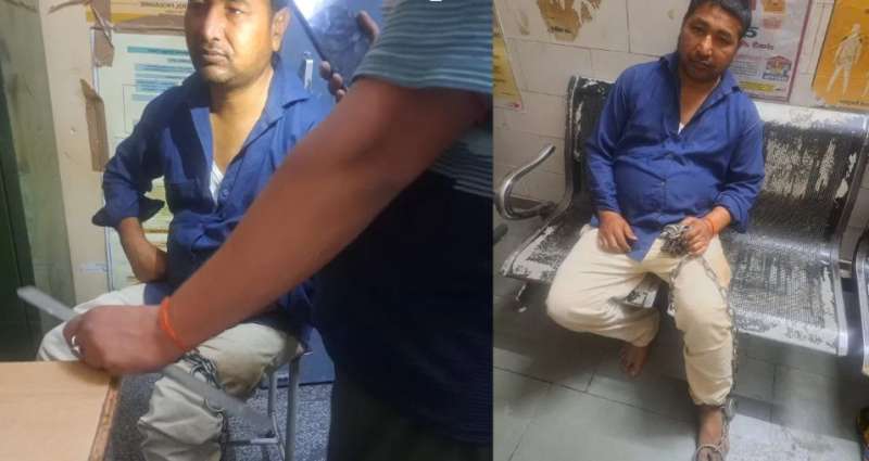 जंजीरों में जकड़ा पति पहुंचा थाने, पुलिस ने आरी से काटवाया ताला