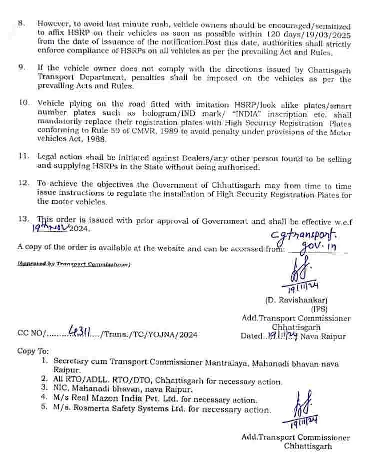 CG नए ट्रैफिक रूल: HSRP नंबर प्लेट लगवाना अनिवार्य, नहीं लगवाया तो भरना पड़ेगा भारी जुर्माना, होगी कड़ी कार्यवाई