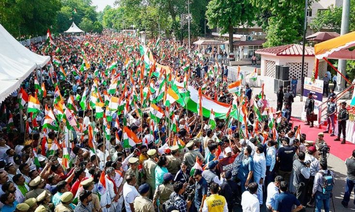 तिरंगा यात्रा में अदर बैकवर्ड कास्ट ओबीसी के 23 संगठनों ने भाग लिया।