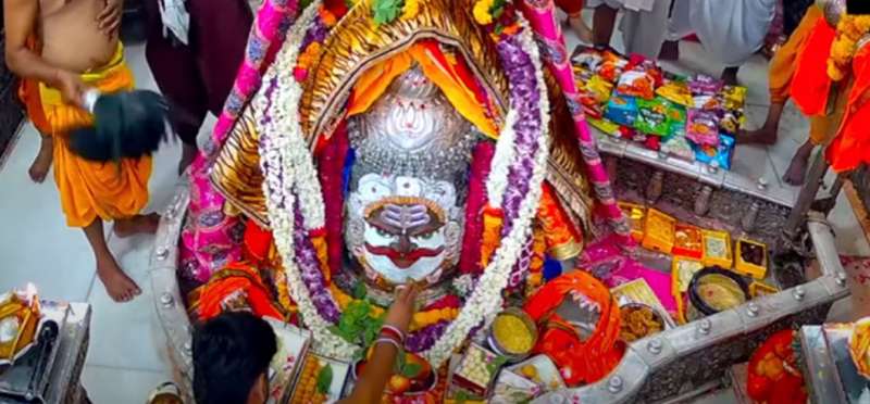 कालों के काल विश्व प्रसिद्ध श्री महाकालेश्वर मंदिर में आज आषाढ़ माह कृष्ण पक्ष की तृतीया तिथि शनिवार पर आज श्री महाकालेश्वर मंदिर में बाबा महाकाल का त्रिपुंड से विशेष शृंगार किया गया। महाकाल मंदिर के पुजारी पंडित महेश शर्मा ने बताया कि भस्म आरती के लिए सुबह चार बजे मंदिर के पट खुलते ही पुजारियों ने गर्भगृह में स्थापित सभी भगवान की प्रतिमाओं का पूजन कर भगवान महाकाल का जलाभिषेक दूध, दही, घी, शक्कर फलों के रस से बने पंचामृत को अर्पित कर किया। इसके बाद प्रथम घंटाल बजाकर हरि ओम का जल अर्पित किया गया। कपूर आरती के बाद बाबा महाकाल को फूलों की माला धारण करवाई गई।