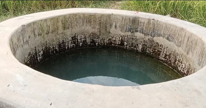 कच्चे कुएं को पक्का करने का हो रहा था काम