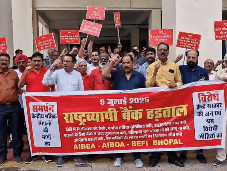 भोपाल में 400 शाखाएं हैं, जहां 5 हजार बैंककर्मी राष्ट्रव्यापी बैंक हड़ताल में शामिल होंगे। इस हड़ताल से बैंकों का कामकाज ठप रहेगा। ट्रेड यूनियन संयुक्त मोर्चा के प्रवक्ता वीके शर्मा ने इस हड़ताल के बारे में जानकारी दी। उन्होंने कहा कि 'केंद्रीय श्रमिक संगठनों और स्वतंत्र ट्रेड यूनियंस ने केंद्र सरकार की जन एवं श्रम विरोधी नीतियों के खिलाफ, अपनी 17 सूत्रीय मांगों के निराकरण के लिए यह राष्ट्रव्यापी आम हड़ताल का आह्वान किया है।'