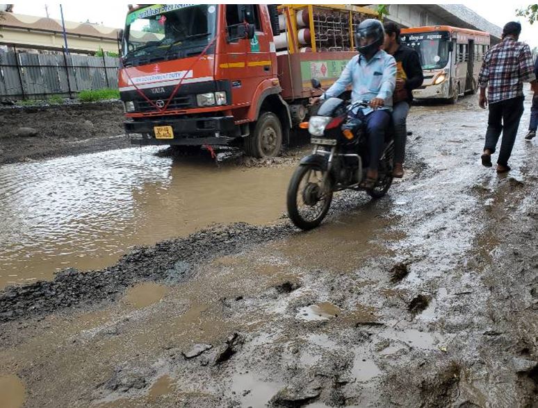 इंदौर में बारिश ने खोली स्मार्ट सिटी की पोल, सड़कें टूटीं, गड्ढों से भरे रास्ते