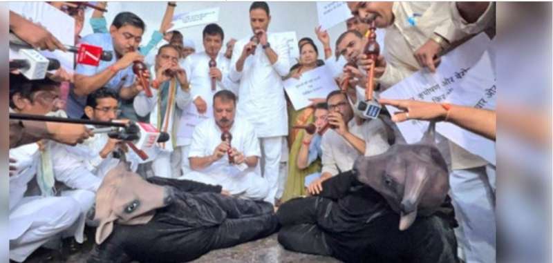 म.प्र. मानसून सत्र में कांग्रेस ने भैंस के सामने बीन बजाकर राजनीतिक प्रदर्शन किया