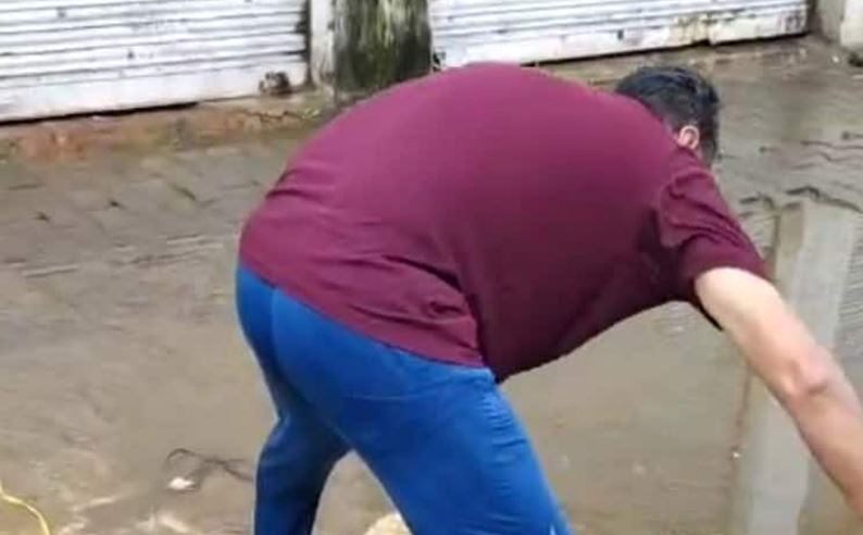 जलभराव का जायजा लेने निकले आयुक्त ने खुद हटाए पत्थर और पॉलीथिन