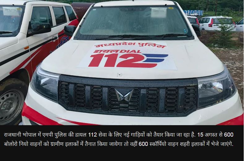 मध्य प्रदेश में 15 अगस्त से करीब 1200 डायल 112 गाड़ियां प्रभावशाली होने वाली हैं। इसके लिए महिंद्रा की 1200 स्कॉर्पियो गाड़ियों को तैयार किया जा रहा है। इस आधुनिक वाहन में तीन प्रकार के सायरन लगाए गए हैं, जो यह बताते हैं कि उस समय 112 डायल पुलिस, एंबुलेंस या फायर ब्रिगेड किस तरह काम कर रही है। अब तक डायल 100 में वायरलेस और GPRS सुविधा होती थी, मगर डायल 112 पहली बार लाइव स्ट्रीम कैमरे की सुविधा के साथ रोड़ पर उतरेगी। इस नई सुविधा की मदद से जिला मुख्यालय में बैठे पुलिस के आला अधिकारी लाइव स्ट्रीम के माध्यम से घटनास्थल को देख सकेंगे।