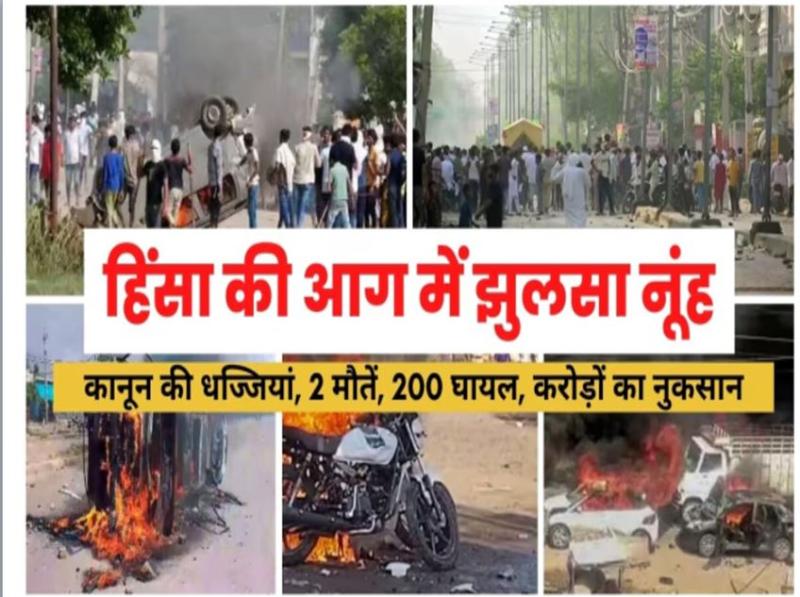 इस बीच खबर है कि हरियाणा सरकार ने केंद्र से रैपिड एक्शन फोर्स की 20 कंपनियां मांगी हैं. वहीं मंलगवार की सुबह नूंह में माहौल तनावपूर्ण रहा. इस बीच शहर पूरी तरह से थमा नजर आया. बडकली चौक, पिनगवां, पुन्हाना, फिरोजपुर झिरका और तावडू में बाजार बंद रहे.तब नूंह में हिंदू संगठनों ने ब्रजमंडल यात्रा निकाली थी. इस दौरान दो गुटों में टकराव हुआ. इस दौरान 40 से ज्यादा वाहनों को आग के हवाले कर दिया गया था. एक दूसरे पर पथराव हुआ और फायरिंग की घटनाएं भी सामने आई. उपद्रवियों ने वाहनों में तोड़फोड़ भी की.इस हिंसा में दो होमगार्ड की मौत की खबर है. 15 से ज्यादा लोग घायल बताए जा रहे हैं. कुछ उपद्रवियों को पुलिस ने हिरासत में भी लिया है. फिलहाल नूंह में अतिरिक्त पुलिस बल पहुंच चुका है. रैपिड एक्शन फोर्स के जवान शहर में लगातार गश्त कर रहे हैं. हरियाणा पुलिस के जवान भी पूरी तरह से अलर्ट हैं. तकरीबन 1800 से 2000 जवान हालात पर काबू पाने के लिए जुटे हैं. गुरुग्राम अलवर राष्ट्रीय राजमार्ग से जली हुई गाड़ियों को जिला प्रशासन ने हटवा दिया है.