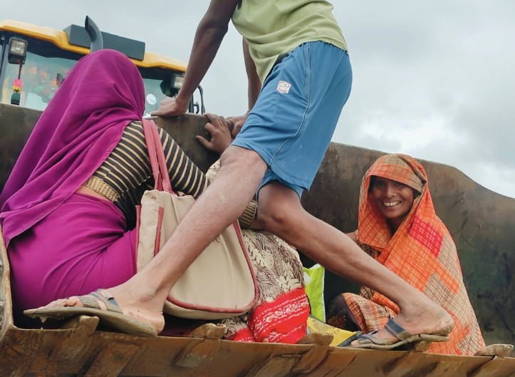 जेसीबी की बकेट से गर्भवती महिला ने पार किया बहता नाला, दूसरी ओर इंतज़ार कर रही थी एम्बुलेंस