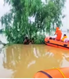 एनडीआरएफ टीम ने बताया कि 16 साल के फंसे लड़के को बचाने के लिए तीन युवा आए। वे उसे बचाने की कोशिश कर रहे थे कि अचानक तेज बहाव में वे भी उसके साथ बह गए। लेकिन वे चारों भी पानी में बह गए। वे बहकर पाकिस्तान में चले जाते। लेकिन एक यूकेलिप्टस के पेड़ ने उन्हें बचा लिया। वे सभी अपनी जान बचाने के लिए उस पेड़ से कसकर चिपक गए।