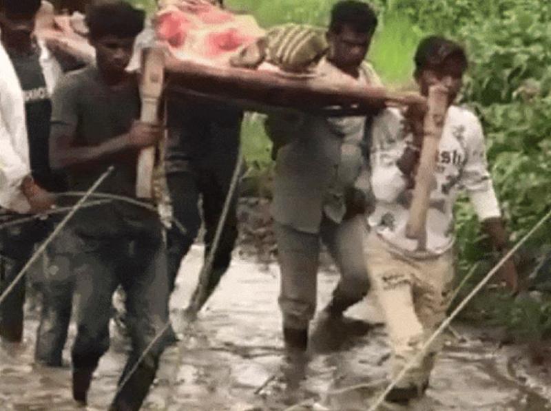 मैहर में बदहाल व्यवस्था: सड़क न होने के कारण एंबुलेंस नहीं पहुंची, ग्रामीणों ने खाट को बनाया स्ट्रेचर