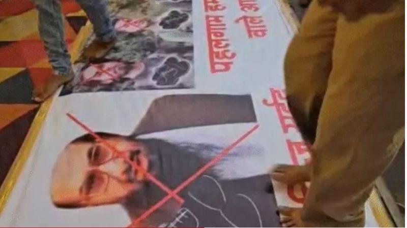 उज्जैन । उज्जैन में गणेश उत्सव के पंडाल में हाफिज सईद जैसे आतंकियों के पोस्टर लगे हैं। पोस्टर को पंडाल के पास उस जगह पर लगाया गया है। जहां पर लोग जूते-चप्पल उतारते हैं. पहलगाम के आतंकियों के पोस्टर भी लगाए गए हैं, पोस्टर में लिखा है कि तुमने तो धर्म पूछकर मारा था लेकिन हम तुम्हें पैरों से रोंदने से पहले तुम्हारी कौम नहीं पूछेंगे।