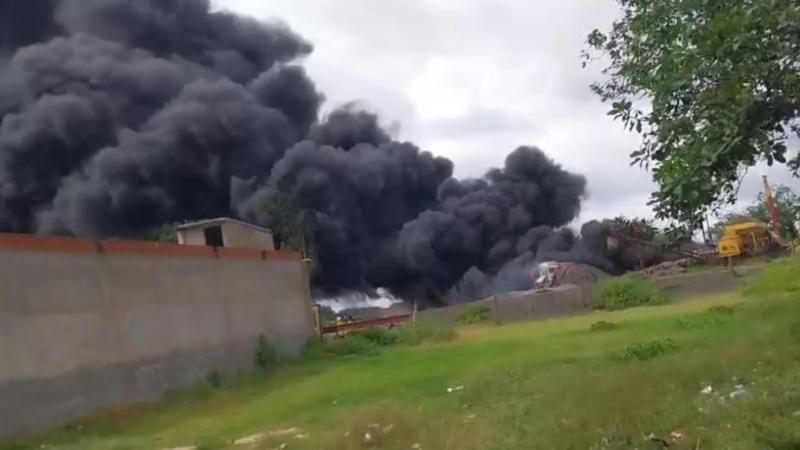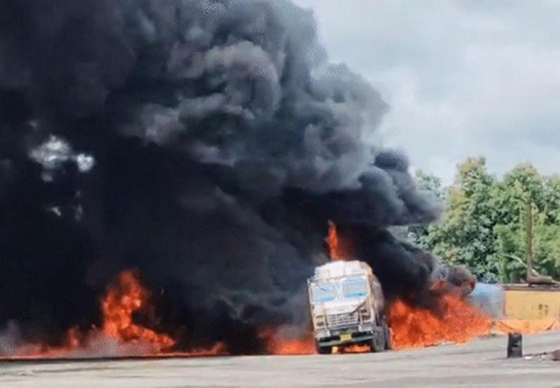 अलकतरा अनलोडिंग के दौरान अचानक भड़की लपटें , स्थानीय लोगों ने दी अग्निशमन विभाग को सूचना