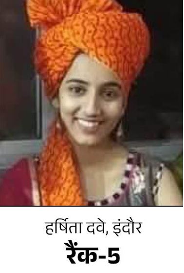 एमपीपीएससी की टॉपर लिस्ट में इंदौर की हर्षिता दवे 5वें क्रम में है। साथ ही महिला कैटेगरी में टॉप पर हैं। वह महज 22 साल की हैं। हर्षिता ने बीए और एमए किया है। हर्षिता के पिता डॉ विकास दवे ने नवभारत टाइम्स डॉट कॉम को बताया कि उनकी बेटी हर दिन 12 से 14 घंटे पढ़ाई करती थी। वे बचपन से ही स्कूल में हर गतिविधि में शामिल होती थी। साथ ही मंच में हमेशा अव्वल आती रही थी।
