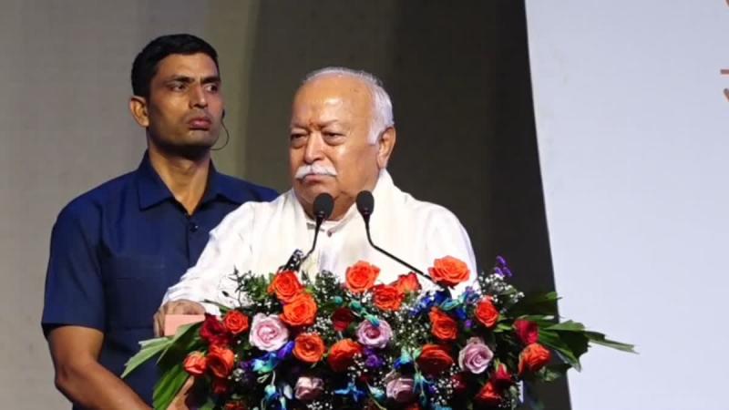 मोहन भागवत ने बताया कि "धर्म का वास्तविक अर्थ है किसी को दुख न देना. दुनिया लॉजिक से नहीं धर्म से चलती है." उन्होंने एक उदाहरण देते हुए कहा, "ज्ञान और कर्म दोनों जरूरी है केवल ज्ञानवान होकर निष्क्रिय रहना गड़बड़ी करता है. हम कभी नहीं बटे, कुछ बटे थे तो उन्हें भी मिला लेंगे." उन्होंने आगे कहा कि "पहले गला काटने और जेब काटने का काम दर्जी करते थे अब पूरी दुनिया यही कर रही है."