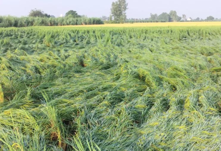 काहनूवान (गुरदासपुर)। शुक्रवार सुबह तड़कसार मौसम में अचानक आए बदलाव के चलते चली आंधी और वर्षा होने से इस क्षेत्र में कई जगहों पर पककर तैयार हो रही धान और गन्ने की फसल जमीन पर बिछ गई। हालांकि तेज चली हवाओं और बारिश के बाद मौसम में एकदम से खुशगवार हो गया। जबकि कुछ दिन से लोग उमस और गर्मी से बेहाल थे, मगर बेमौसमी वर्षा और आंधी चलने से किसानों की चिंता बढ़ गई है क्योंकि इस समय खेतों में खड़ी धान की फसल पककर तैयार हो चुकी है और किसान अपनी फसल को मंडी में बेचने के लिए बेताब है।
