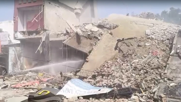 मेरठ। मेरठ (Meerut) में रविवार को भी जमकर बुलडोजर (Bulldozers) चला है। सेंट्रल मार्केट (Central Market) के 661/6 पर बने अवैध कॉम्प्लेक्स (Illegal Complex) को ध्वस्त (Demolished) कर दिया गया। सेंट्रल मार्केट के 661/6 पर बने अवैध कॉम्प्लेक्स का 10% हिस्सा बचा हुआ है। आसपास के मकानों और दुकानों से ये शेष हिस्सा जुड़ा हुआ है।