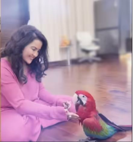 मकाऊ भी अमृता को देखते ही उनके कंधे पर आकर बैठ गया। उनसे खेलने लगा और फिर अमृता को छोड़ा तक नहीं।