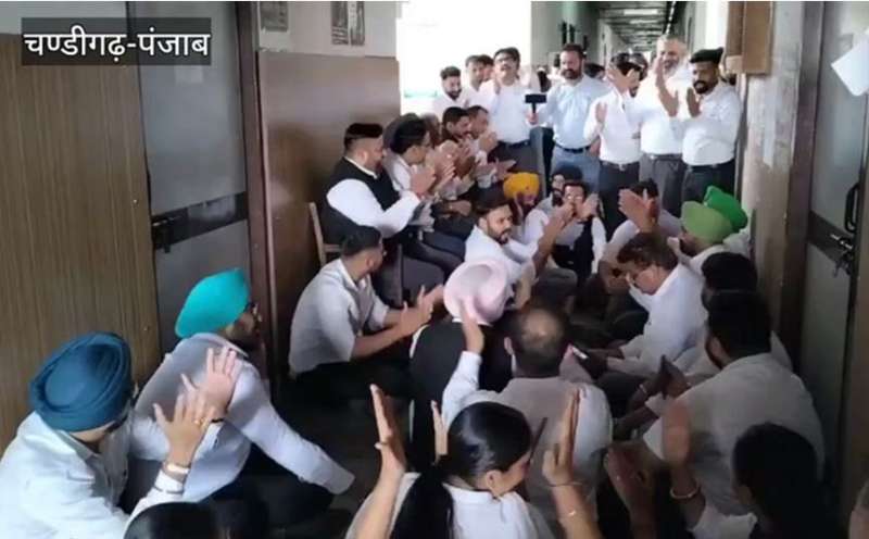 होशियारपुर में वकीलों का प्रदर्शन, एएलसी को ऑफिस से निकलने नहीं दिया