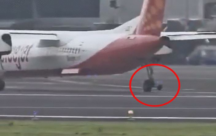 एयरलाइन प्रवक्ता ने कहा, “कांडला से मुंबई जा रहे Q400 विमान का एक बाहरी पहिया उड़ान भरने के बाद रनवे पर पाया गया। विमान ने सुरक्षित रूप से मुंबई में लैंडिंग की, किसी भी यात्री को चोट नहीं आई।”