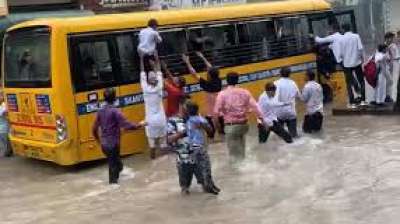तेज बहाव में बही स्कूली बस, 30 बच्चों की सांसें अटकीं, ग्रामीणों ने बचाई मासूमों की जान