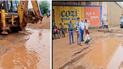 राष्ट्रीय राजमार्ग पटेल चौक पड़ोरा पर JCB मशीन से गड्डो को भरवाया गया